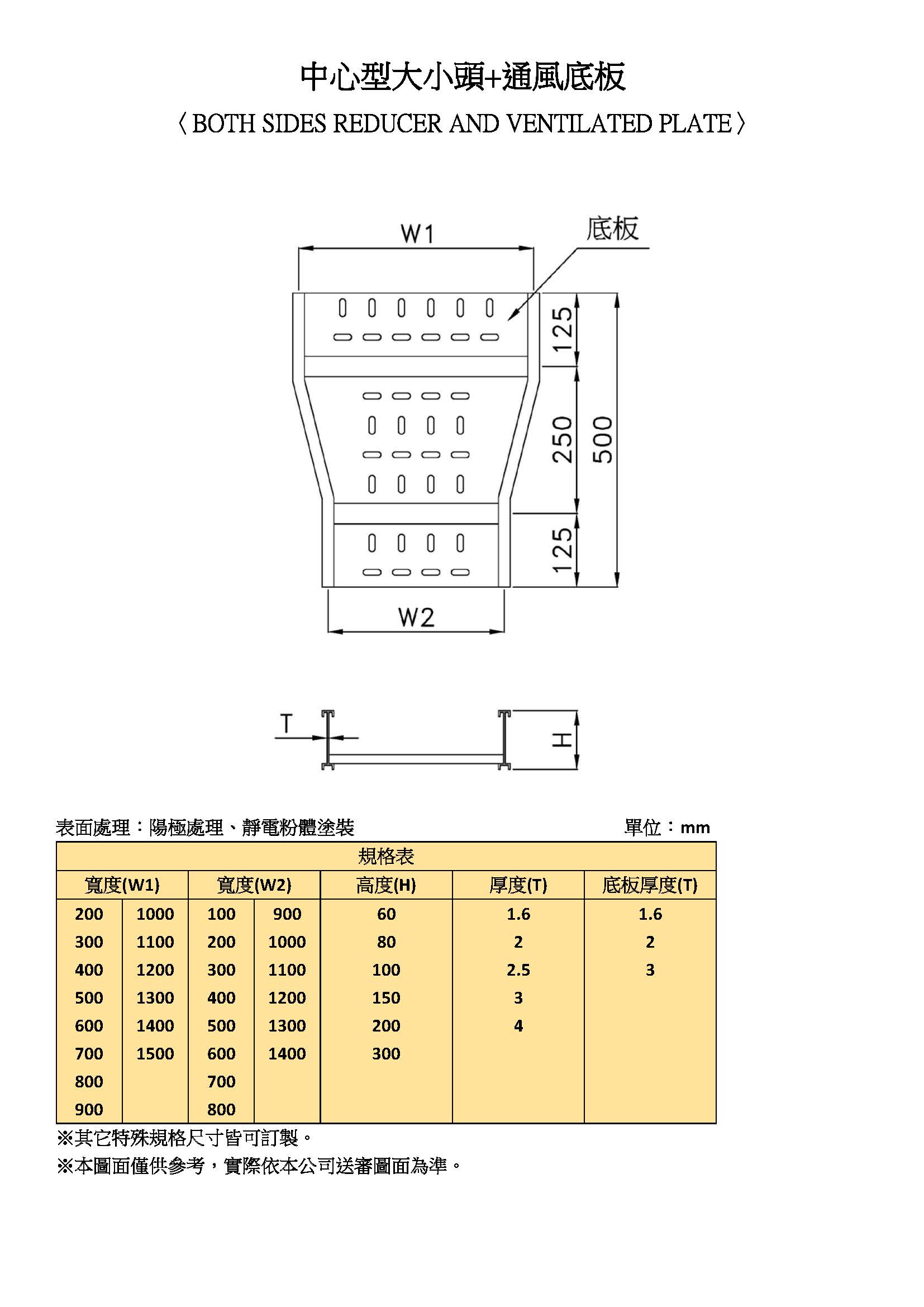 水平中心型大小頭+通風底板