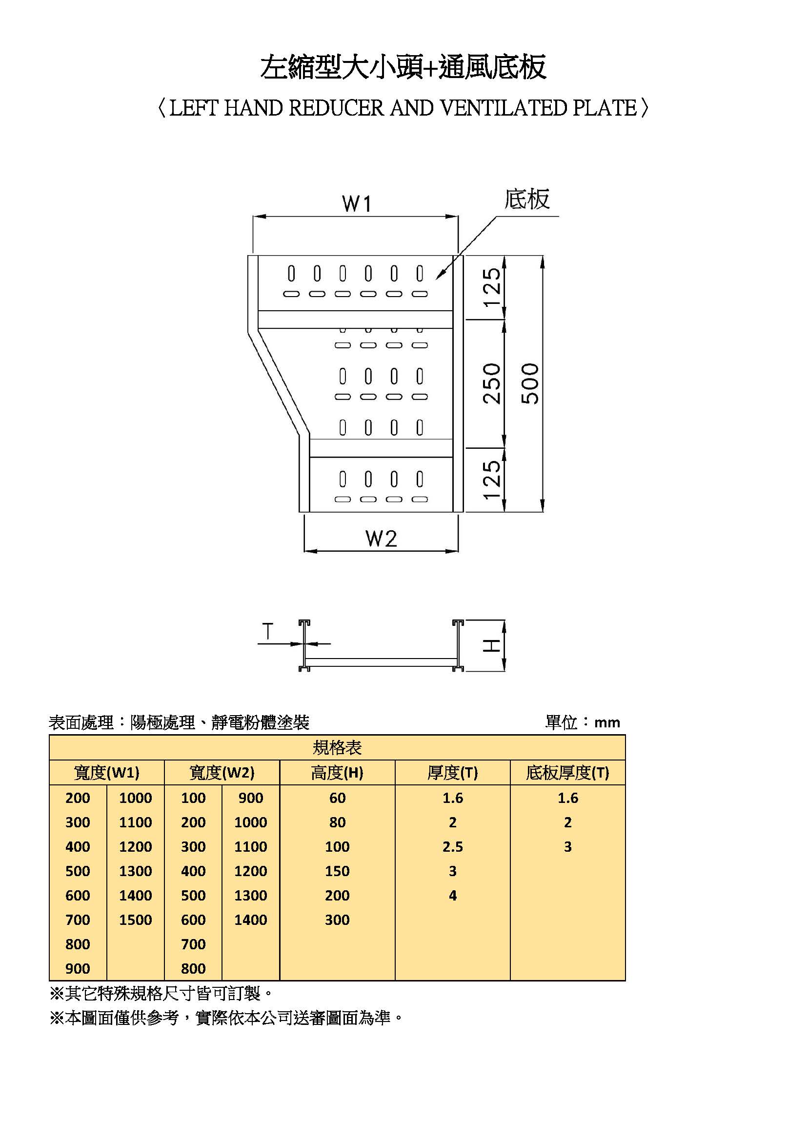 水平左縮型大小頭+通風底板