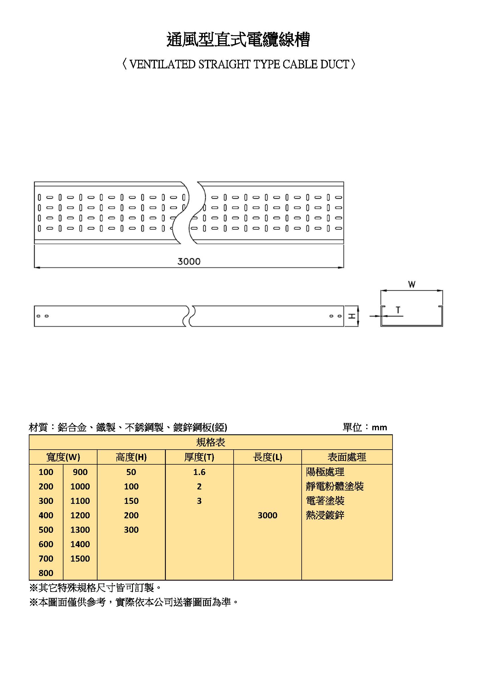 (鋁/鐵/不銹鋼製)通風型電纜線槽