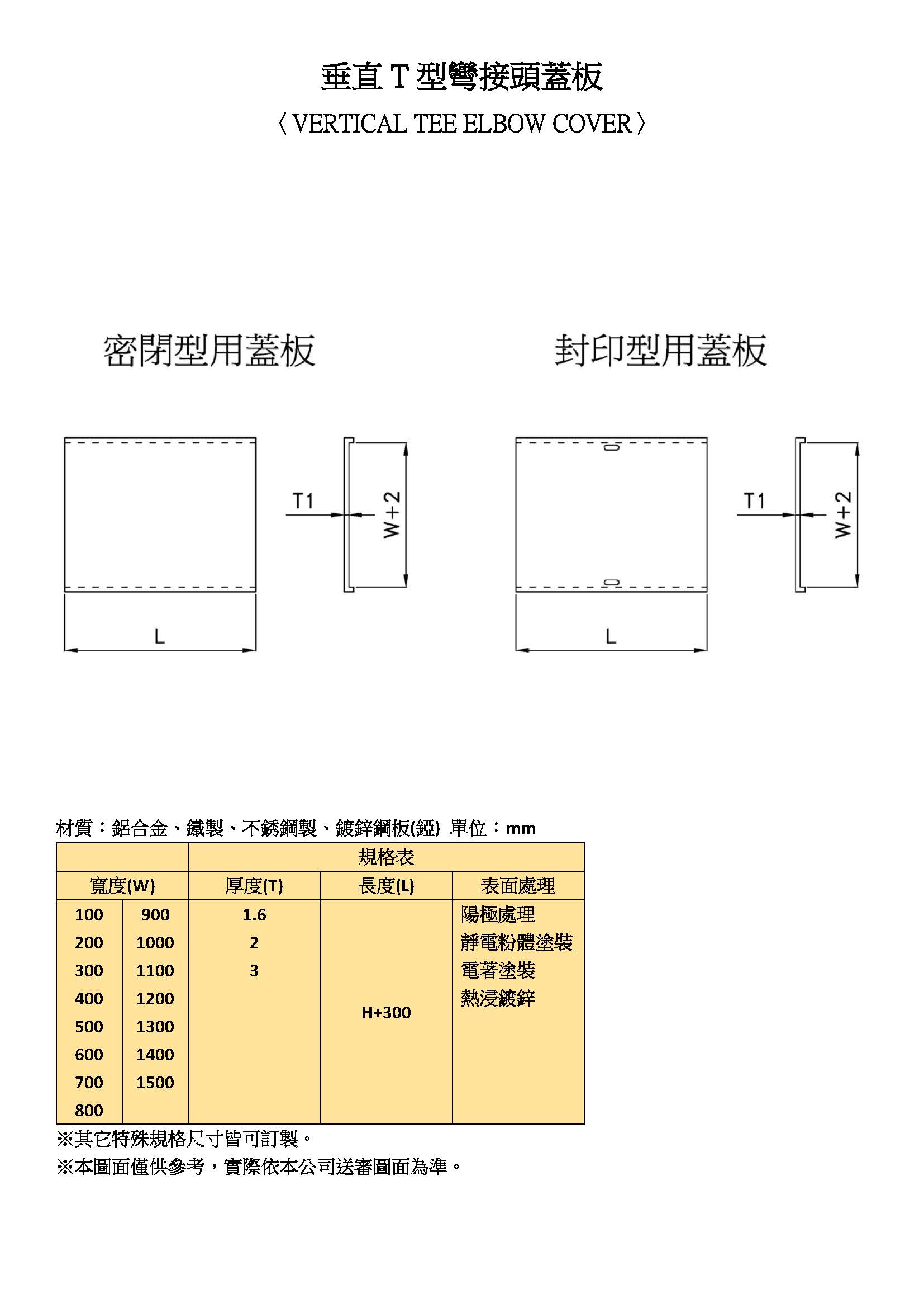垂直T型彎接頭蓋板