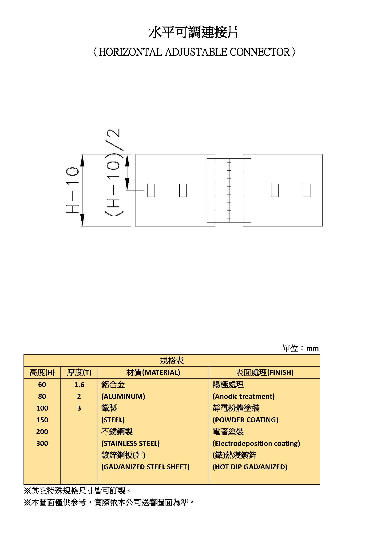 水平可調連接片