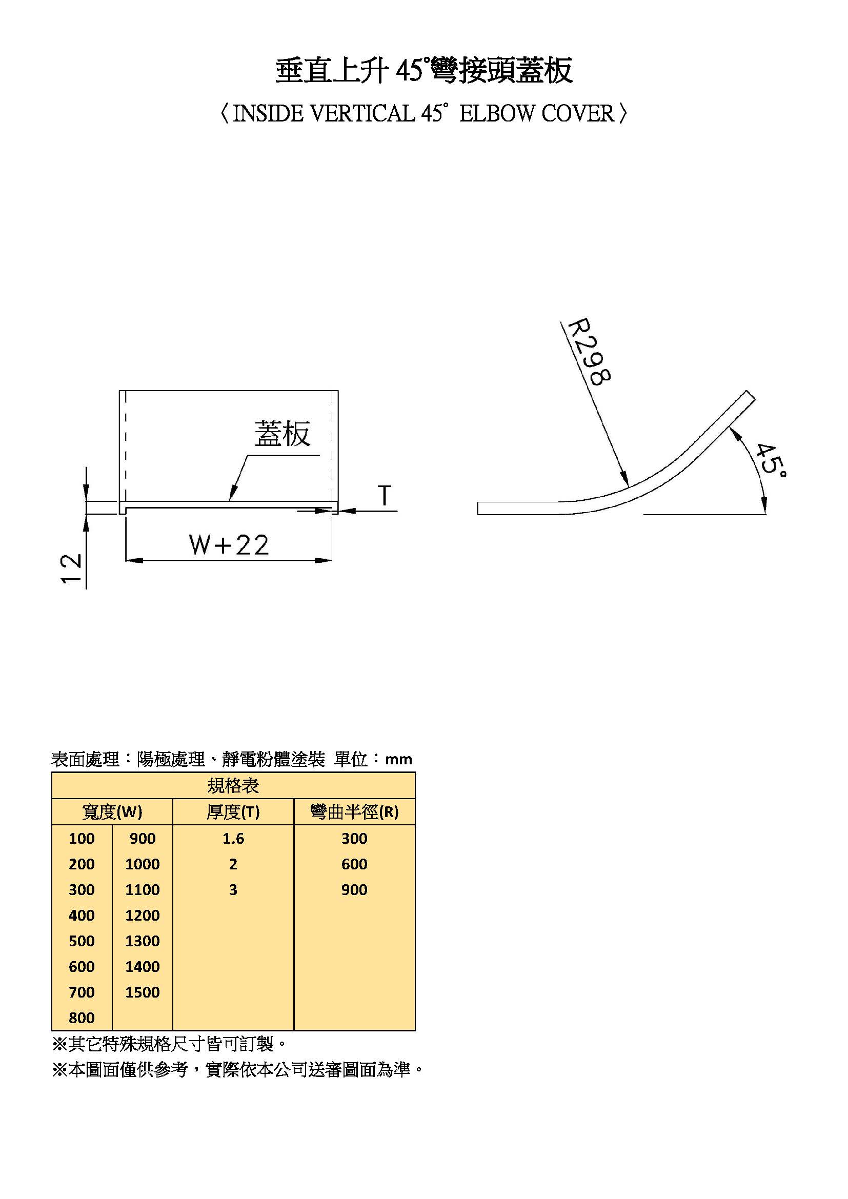 垂直上升45°彎接頭蓋板