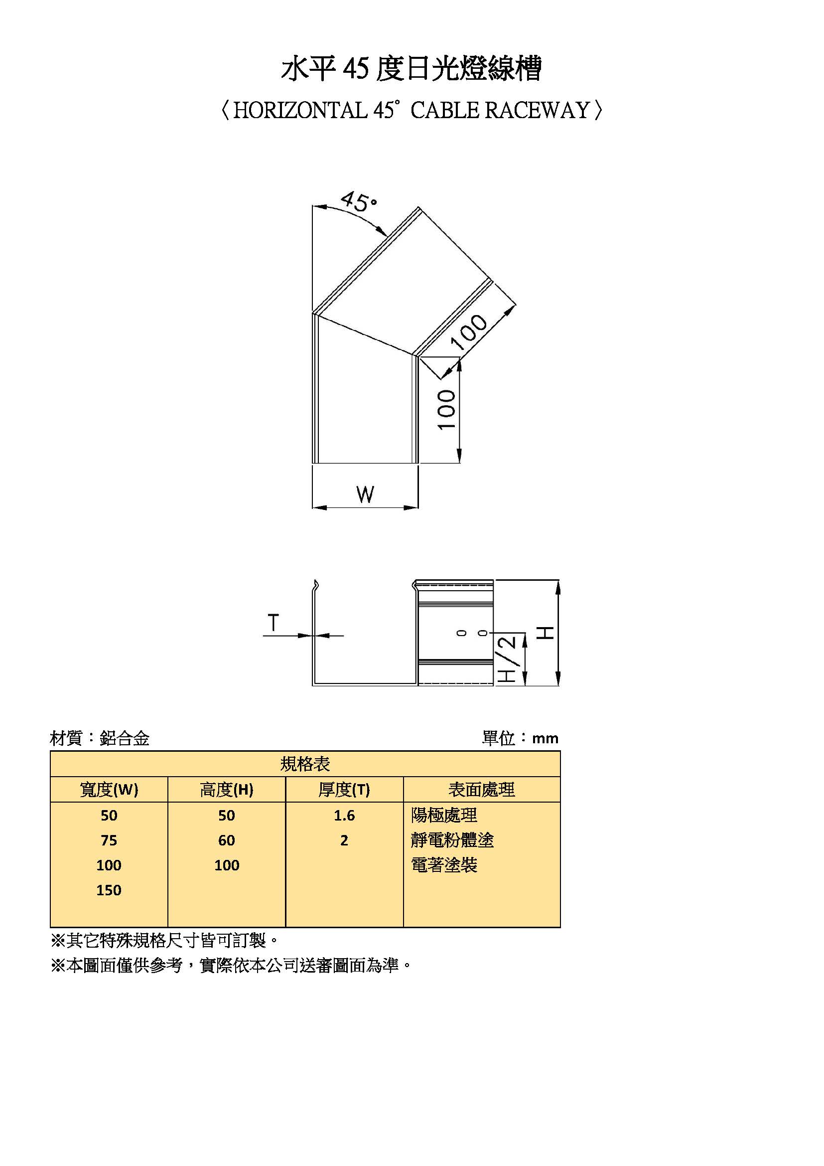 水平45度日光燈線槽