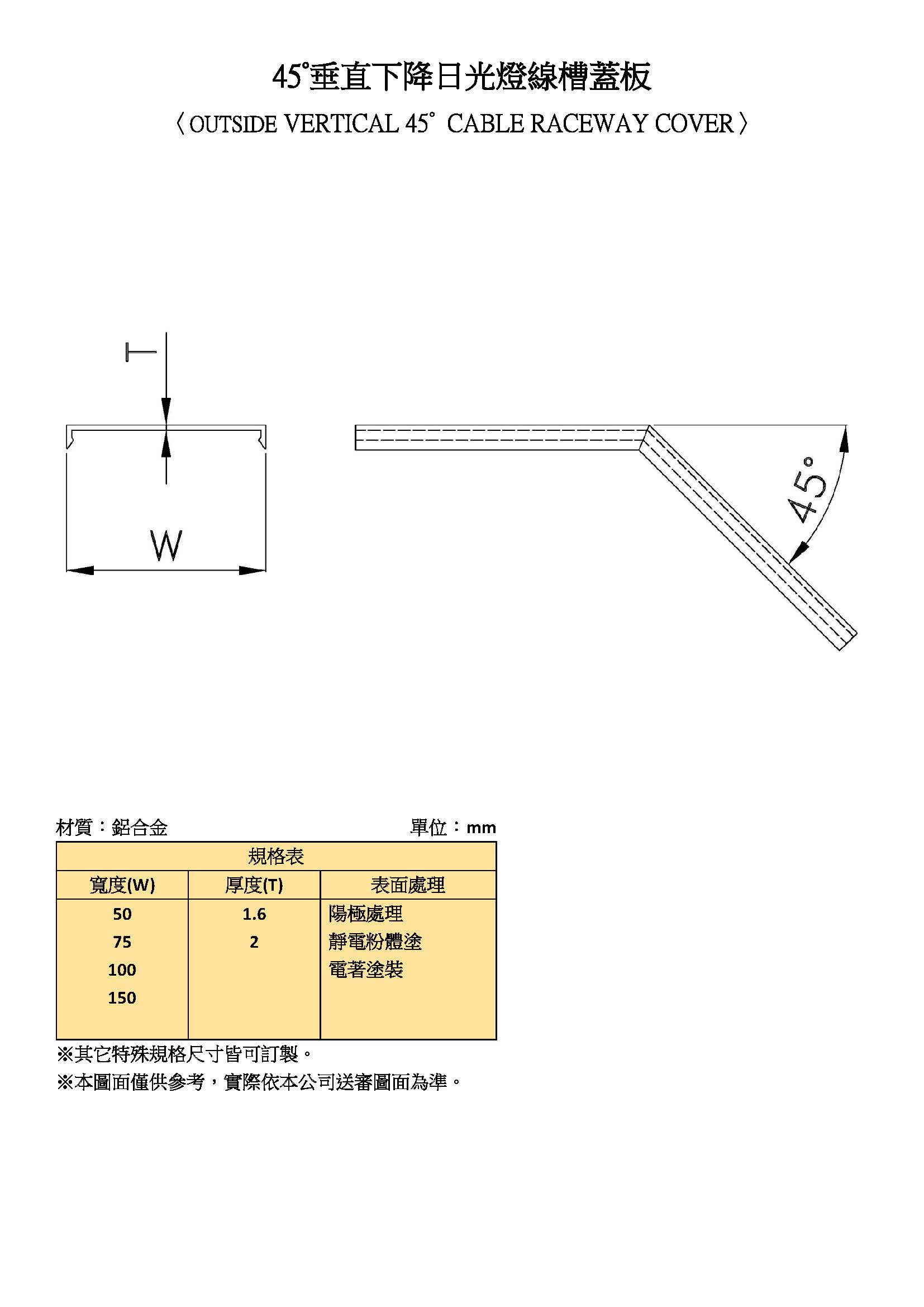 45°垂直下降日光燈線槽蓋板